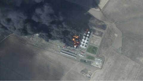 Ảnh vệ tinh của Planet Labs PBC cho thấy đám cháy từ một kho xăng dầu của Nga gần Proletarsk sau khi bị drone Ukraine tấn công, ngày 19/08/2024. AP - Planet Labs PBC