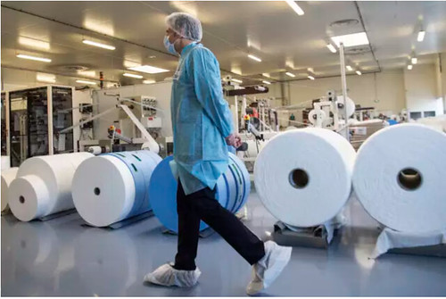 Nhưng tờ báo cũng nhận định một cách hóm hỉnh là lịch sử sẽ ghi lại rằng tổng thống Pháp muốn "khôi phục chủ quyền quốc gia và Châu Âu" khi phát biểu tại chi nhánh của một tập đoàn Canada : xưởng sản xuất khẩu trang FFP2 (tức KN95) mà ông viếng thăm thuộc công ty Kolmi-Hopen. Ông đã hoan nghênh nỗ lực của các nhà công nghiệp tại Pháp để tăng sản xuất khẩu trang.