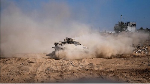 Một xe quân sự Israel trong chiến dịch trên bộ chống lại nhóm Hồi giáo Hamas ở Dải Gaza. Ảnh của quân đội Israel ngày 13/11/2023 via Reuters – Israeli Defense Forces