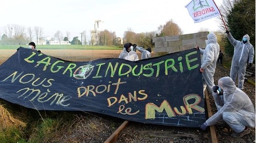 Một cuộc biểu tình chống lại việc nền nông nghiệp bị các tập đoàn thực phẩm thao túng. Ảnh chụp gần Saint-Gérand, Pontivy, Pháp, ngày 19/03/2022. AFP – Jean-François Monier