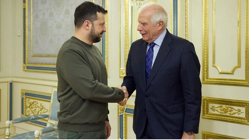 Tổng thống Ukraine Volodymyr Zelensky tiếp lãnh đạo ngoại giao Liên Âu Josep Borrell tại Kiev, Ukraine, ngày 07/02/2024 via Reuters – Ukrainian Presidentail Service