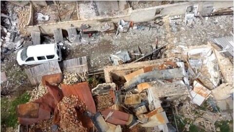 Những thành phố Ukraine nơi quân Nga đi qua chỉ còn là gạch vụn. Ảnh chụp từ một video ngày 27/04/2022 tại Moschun, ngoại ô Kiev via Reuters - YouTube/Andrey Nebitov