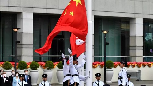 Cờ Trung Quốc và Hồng Kông trong lễ kỷ niệm 23 năm Hồng Kông được Anh Quốc trao trả lại cho Bắc Kinh. Ảnh ngày 01/07/2020. Anthony WALLACE / AFP