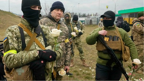 "Lực lượng phòng vệ lãnh thổ" bị quá tải trước lượng người tình nguyện. Một nghệ sĩ nổi tiếng cho biết : "Quân đội chuyên nghiệp là nắm đấm của chúng tôi, còn lực lượng này giúp quân đội không bị xao lãng bởi những nhiệm vụ khác". Marina Mahdenko, một cô gái 23 tuổi đã đi đăng ký hai lần nhưng chưa được nhận, đang cặm cụi đào giao thông hào bên cạnh một chốt gác phía bắc Kiev, do Oleg, 50 tuổi, vốn là giáo viên chịu trách nhiệm. Trong trường hợp xe tăng Nga tiến vào, họ sẽ phóng hỏa chốt gác để chận, một căn hộ gần đó có chứa sẵn bom xăng.