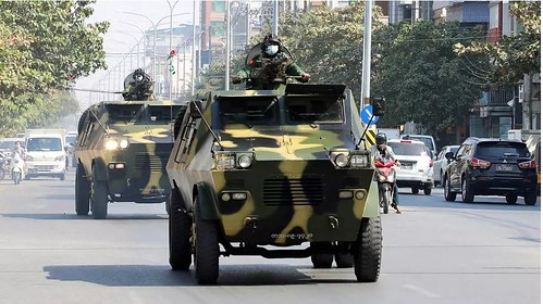 Xe bọc thép của quân đội Miến Điện trên đường phố sau đảo chính, ngày 03/02/2021. Reuters – Stringer