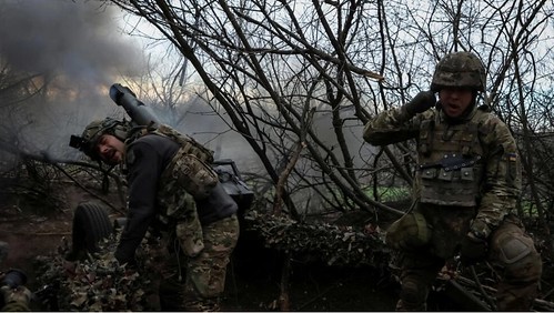 Các quân nhân thuộc lữ đoàn lực lượng đặc biệt số 12 Azov bắn đại bác Howitzer về phía quân Nga tại Donetsk, ngày 05/04/2024. Reuters - Sofiia Gatilova