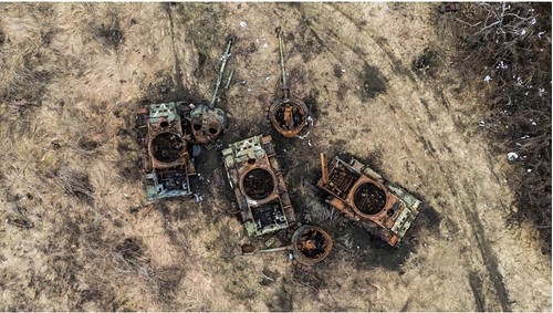 Các xe tăng Nga bị phá hủy ở làng Bohorodychne thuộc vùng Donetsk, Ukraine ngày 13/02/2024. Reuters 9 Stringer