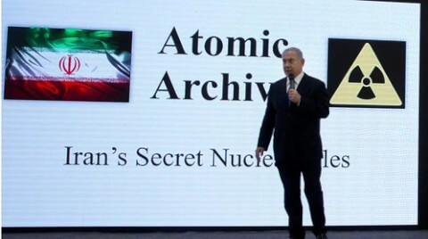 Thủ tướng Israel Benjamin Netanyahou trình bày tài liệu về chương trình nguyên tử Iran ngày 30/04/2018 tại Tel Aviv, do Mossad lấy được. Cơ quan tình báo Israel nổi tiếng là có những hoạt động bí ẩn và táo bạo. AP - Sebastian Scheiner