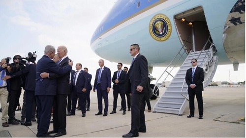 Trước chuyến công du của tổng thống, ngoại trưởng Antony Blinken có cuộc họp 8 giờ tại trụ sở Bộ Quốc phòng Israel với nội các chiến tranh của thủ tướng Benyamin Netanyahou. Trước đó chỉ có ngoại trưởng Mỹ Henry Kissinger tham gia các cuộc họp tương tự với Israel vào thời điểm chiến tranh Kippour 1973. Tối hôm thứ Hai qua ngày thứ Ba, Mỹ đạt được cam kết của thủ tướng Israel lập một vùng an toàn cho hàng trăm nghìn dân tị nạn Palestine tại phía nam dải Gaza. Les Echos cũng cho biết rõ là phía Mỹ đã gây áp lực buộc Israel thảo ra một chiến lược hậu chiến tại Gaza, tránh để quân đội Israel bị sa lầy tại nơi họ đã rút khỏi từ năm 2005.