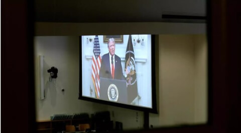 Tổng thống Mỹ Donald Trump phát biểu trước kỳ họp thứ 75 Đại hội đồng Liên Hiệp Quốc ngày 22/09/2020 qua video thu hình sẵn. Reuters – Mike Segar