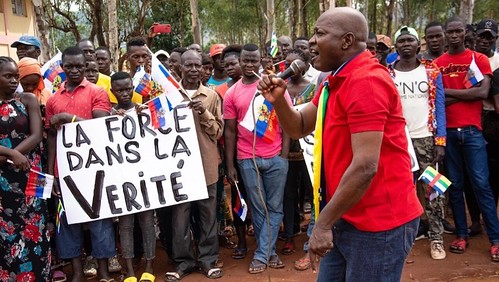 Từ vài năm qua, Trung Phi đã trở thành lò tuyên truyền mạnh mẽ của Nga. Một cựu thành viên đảng cầm quyền, hiện sống lưu vong, giải thích : "Các cuộc họp bí mật được tiến hành để chuẩn bị cho các cuộc biểu tình, được tổ chức nơi có tổng thống, lính Wagner và các cơ quan cao nhất của Trung Phi". Những người tham gia nhận được một khoản tiền và sau đó họ phân phối cho các trưởng khu phố. Mỗi người nhận được 1.500 franc CFA (khoảng 2 euro) khi cuộc biểu tình kết thúc. Số tiền này đủ để sống một ngày ở quốc gia nghèo thứ hai trên thế giới.