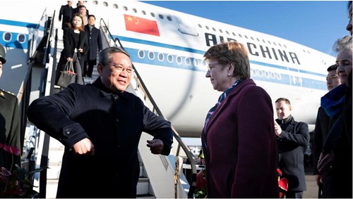 Tổng thống Thụy Sĩ Viola Amherd tiếp đón thủ tướng Trung Quốc Lý Cường đến dự Diễn đàn Davos, tại phi trường Zurich ngày 14/01/2024. via Reuters - Pool