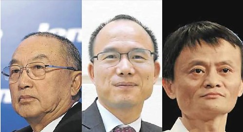 Những doanh nhân quyền lực : (từ trái sang phải) Liu Chuanzhi (ông chủ của Lenovo), Guo Guangchang (ông chủ của Fosun) và Jack Ma (ông chủ của Alibaba)