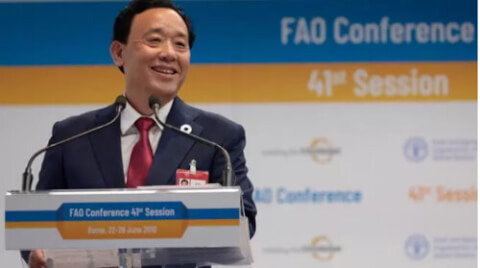 Thứ trưởng nông nghiệp Trung Quốc Khuất Đông Ngọc (Qu Dongyu) trở thành tổng giám đốc Tổ chức Lương Nông Quốc tế Liên Hiệp Quốc (FAO) với nhiệm kỳ 4 năm, phát biểu tại hội nghị ngày 22/06/2020. Ảnh do FAO cung cấp. © FAO