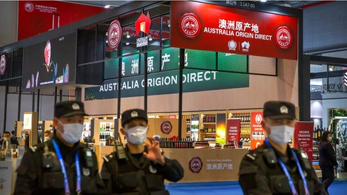 Rượu vang Úc trưng bày tại hội chợ nhập khẩu nông sản Thượng Hải ngày 05/11/2020. Mặt hàng này bị Bắc Kinh áp thuế nhập khẩu đến 220% để trả đũa việc Úc đòi điều tra quốc tế về nguồn gốc virus corona. AP - Mark Schiefelbein