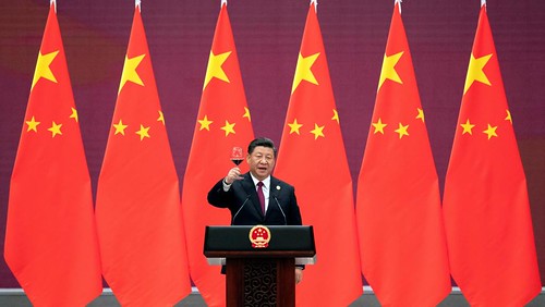 Chủ tịch Trung Quốc Tập Cận Bình nâng cốc chúc sức khỏe các đại diện tham dự diễn đàn Vành đai Con đường, Bắc Kinh, Trung Quốc, ngày 26/04/2019Nicolas Asfour/Pool via Reuters