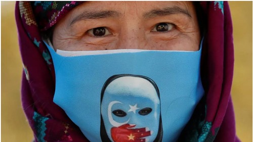 Một người Duy Ngô Nhĩ biểu tình chống Trung Quốc đàn áp người thiểu số Hồi Giáo ở Tân Cương, tại Istanbul, Thổ Nhĩ Kỳ, ngày 01/10/ 2020. Reuters - MURAD SEZER