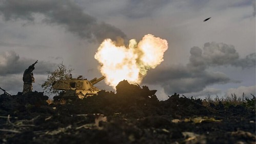 Chiến binh Ukraine sử dụng pháo tự hành ở gần Bakhmut, vùng Donetsk, ngày 22/10/2022. AP - Libkos