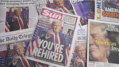 Trang nhất các tờ báo đưa tin về tân tổng thống Mỹ Donald Trump. Hình ảnh tại Luân Đôn, Anh, ngày 07/11/2024. AP - Kirsty Wigglesworth