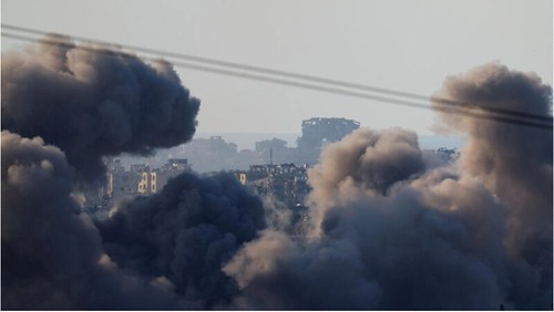 Khói bốc lên sau một vụ nổ ở Gaza, nhìn từ miền nam Israel, trong bối cảnh cuộc chiến chống phe Hồi giáo Hamas, ngày 18/11/2023. Reuters – Alexander Ermoshenko