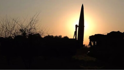 Ảnh do văn phòng báo chí bBộ quốc phòng Nga phổ biến ngày 21/05/2024 cho thấy một hỏa tiễn Iskander trong cuộc diễn tập sử dụng vũ khí nguyên tử chiến thuật tại một địa điểm không công bố ở Nga. AP