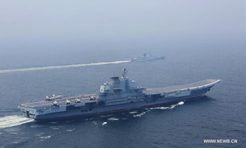 Ảnh tư liệu ngày 23/04/2019 : Tàu sân bay Liêu Ninh tham gia cuộc biểu dương lực lượng nhân kỷ niệm 70 năm thành lập hải quân Trung Quốc ở gần Thanh Đảo. AP - Mark Schiefelbein