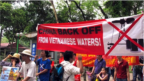 Người Việt biểu tình bên ngoài đại sứ quán Trung Quốc ở Hà Nội ngày 11/05/2014 để phản đối Bắc Kinh đưa giàn khoan đến vùng biển Hoàng Sa. AP - Chris Brummitt
