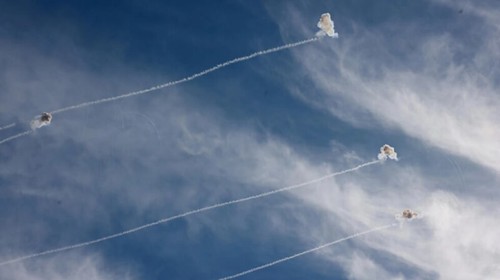 Hệ thống Vòm Sắt của Israel bắn chận những quả rốc-kết của Hamas từ Dải Gaza tấn công vào thành phố Sderot, ngày 08/12/2023. Reuters – Amỉ Cohen