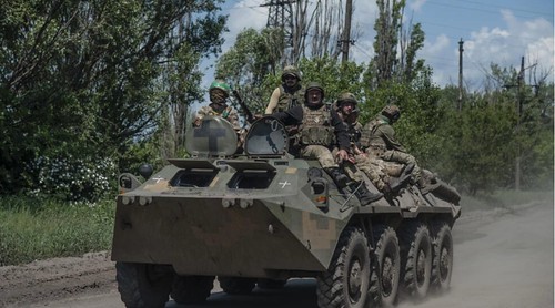 Các chiến binh Ukraine trên mặt trận gần Bakhmut ngày 05/06/2023. AP - Iryna Rybakova