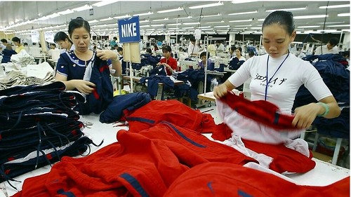 Một xưởng may mặc thương hiệu Nike tại Nhà Bè, Tp. Hồ Chí Minh. Ảnh chụp ngày 15/02/2003. AFP
