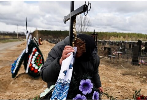 Đám tang tại một nghĩa trang ở Bucha, Ukraine, tháng 4 năm 2022 - Zohra Bensemra / Reuters