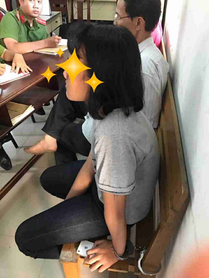 Bé Q.H. bị còng tay không được đến trường để thi cuối cấp. Ảnh : Facebook Hoàng Tuấn