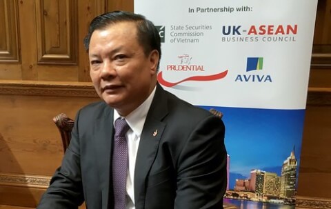 Tân Bí thư Hà Nội Đinh Tiến Dũng thời còn là Bộ trưởng Tài chính trong một phỏng vấn ở London, Anh hôm 4/7/2019 - Reuters