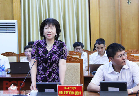 Bà Nguyễn Thị Thanh Nhàn - Chủ tịch Hội đồng quản trị kiêm Tổng Giám đốc của Công ty AIC giới thiệu mô hình thành phố thông minh. Ảnh : BGP/Dương Thủy.
