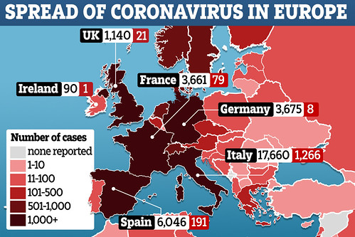 ISIS tin rằng coronavirus là một 'bệnh dịch' do Đấng tối cao đem tới. Bản đồ dịch bệnh coronavirus tại Châu Âu ngày 16/03/2020