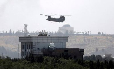 Chiếc trực thăng di tản người Mỹ chạy thoát từ nóc Tòa Đại sứ Mỹ trong lúc phiến quân Taliban đã chiếm dinh Tổng thống không tốn một viên đạn ngày 15/08/2021