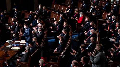 Các nghị sĩ Cộng hòa vỗ tay tại phiên họp lưỡng viện chứng nhận kết quả bầu cử tổng thống 2020