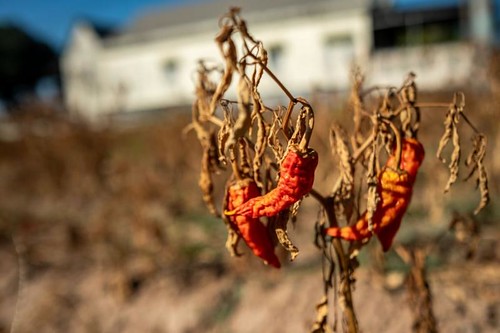 Đồng bằng sông Cửu Long đã trải qua thời gian hạn mặn khắc nghiệt. Ảnh một khu vườn tại thị xã Vĩnh Châu, tỉnh Sóc Trăng bị khô héo vì thiếu nước vào ngày 26/4/2024.