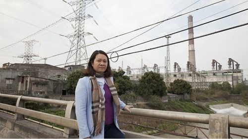 Nhà hoạt động môi trường và chống năng lượng than Ngụy Thị Khanh trước một nhà máy than ở Việt Nam. © goldmanprize.org/