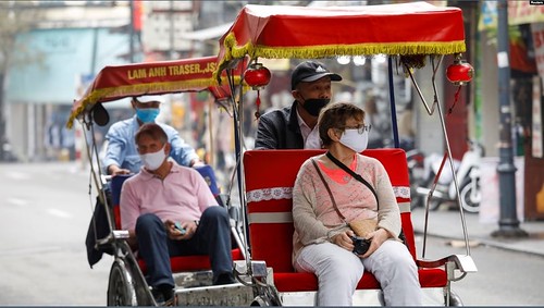 Khách nước ngoài đi tham quan bằng xích lô tại Việt Nam. Công an Việt Nam nói số lượng lớn người nước ngoài đang lưu trú tại Thành phố Hồ Chí Minh gây áp lực cho công tác quản lý cư trú người nước ngoài của họ.