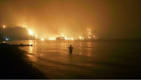 Hình ảnh vụ cháy rừng tại Hy Lạp ngày 06/08/2021. Hiện tượng khí hậu cực đoan gây ra các vụ thiên tai lớn ngày càng phổ biến. AP - Thodoris Nikolaou