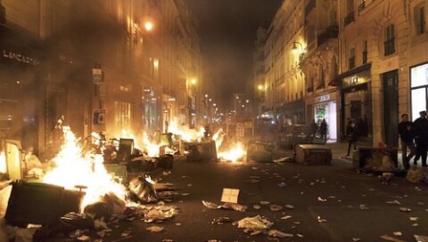 Từ gần một tuần lễ, nước Pháp là một bãi chiến trường : giao tranh giữa người biểu tình và cảnh sát, đốt phá xe hơi, xe lửa, tòa thị chính, các cơ sở công quyền, kể cả sân vận động, thư viện, trường học, rạp hát, cướp phá trong các siêu thị, các cơ sở kinh doanh…