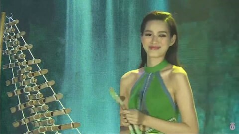 Hoa hậu Đỗ Thị Hà đánh đàn T'rưng với bài "Cô gái vót chông"