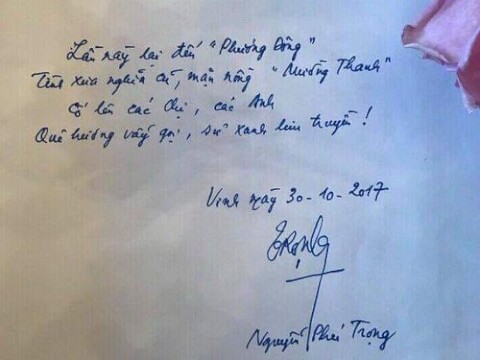 4 câu thơ Tổng bí thư Nguyễn Phú Trọng tặng khách sạn Mường Thanh Grand Phương Đông. Ảnh : Mường Thanh.