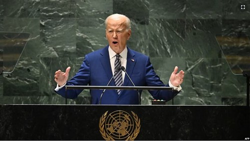 Tổng thống Mỹ Joe Biden đang phát biểu trước Đại hội đồng Liên Hiệp Quốc hôm 19/9 năm 2023