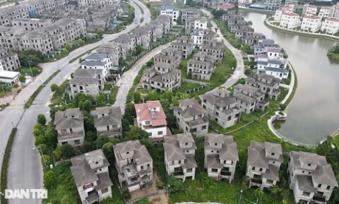 Hàng loạt biệt thự tại khu đô thị Nam An Khánh (Hoài Đức, Hà Nội) đã bỏ hoang từ giai đoạn thị trường bất động sản suy thoái trước (Ảnh : Hà Phong/Dân Trí).