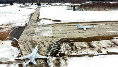 Ảnh do Bộ quốc phòng Nga công bố ngày 05/02/2022 : 2 máy bay ném bom Tu-22M3 của không quân Nga chuẩn bị cất cánh tham tập trận chung với Belarrus. AP