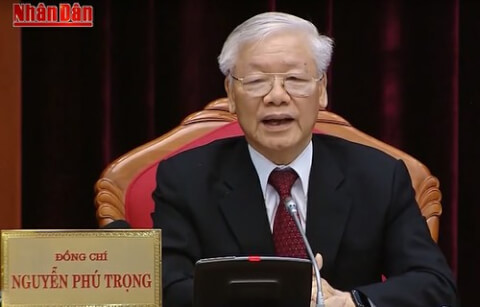 Tổng bí thư kiêm Chủ tịch nước Nguyễn Phú Trọng phát biểu khai mạc Hội nghị Trung ương 10 ngày 16/05/19. Courtesy : Ảnh chụp màn hình Truyền Hình Nhân Dân