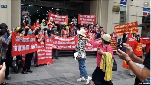 Một cuộc biểu tình của những người bị mất tiền khi mua trái phiếu của ngân hàng SCB ở Hà Nội, 12/11/2022.