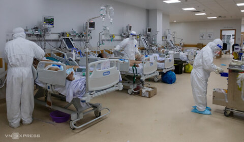 Bệnh nhân Covid-19 nặng, nguy kịch điều trị tại Bệnh viện Hồi sức Covid-19 Thành phố Hồ Chí Minh, ngày 19/7/2021. Ảnh: Thành Nguyễn